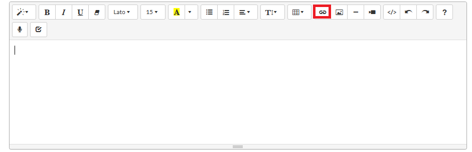 After clicking on the icon, a modal will appear. Complete the form on the modal and click on the "Insert link" button.
