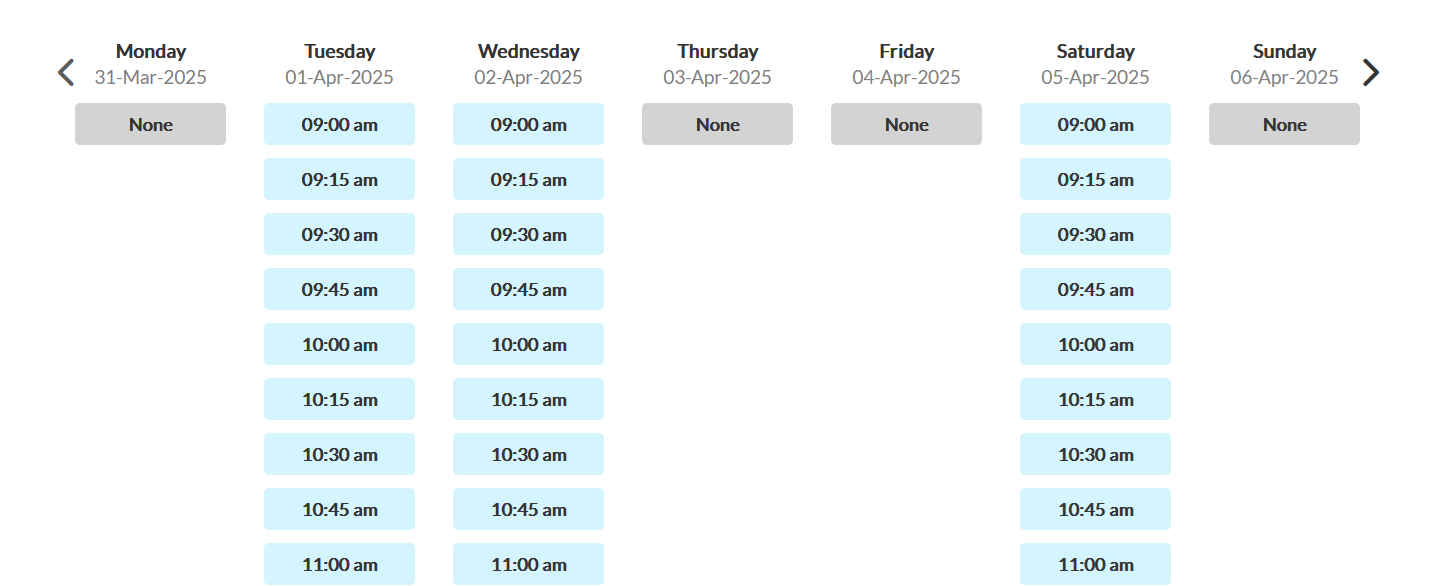 3. Once your pause has been set up, check your Direct Booking to verify that no appointments can be booked during this period.