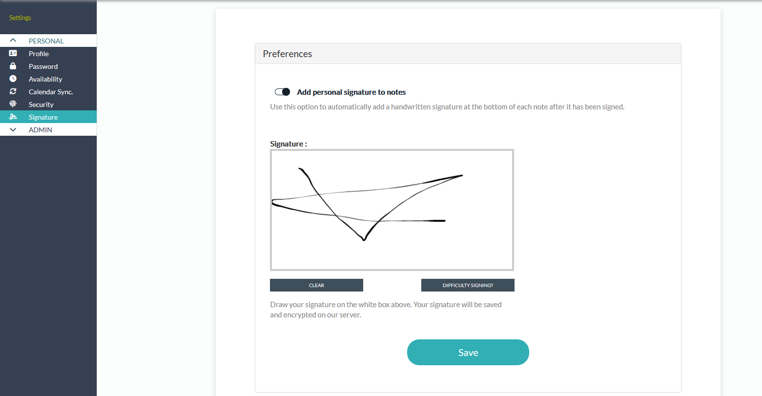You can automatically add a handwritten signature to any note you sign on Colib by following these steps: