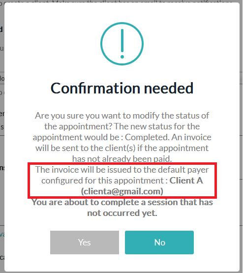 - Our application will know which payer to select when you create an invoice for this appointment, or when you use the invoicing automation (invoice or receipt generated automatically, and appointment status set to Completed).