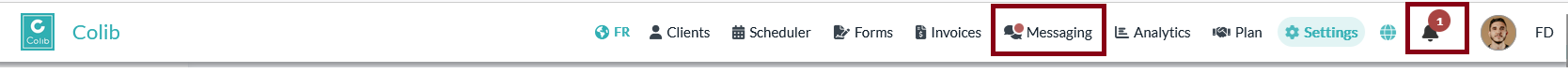 You will receive a notification and the "Messaging" icon will have a red dot :