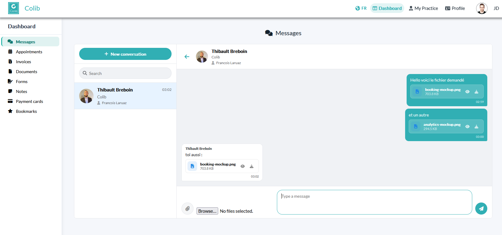 They can only message practitioners they have been assigned to (main or additional practitioners). Like practitioners, they can attach documents to their messages.