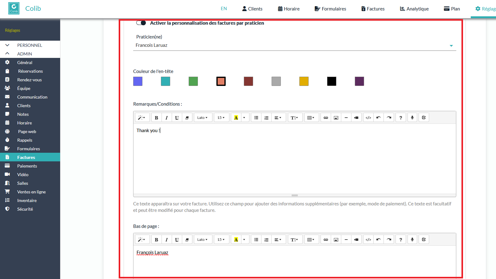 Dans cet article, nous allons détailler comment Colib vous permet de personnaliser les factures pour chaque praticien :