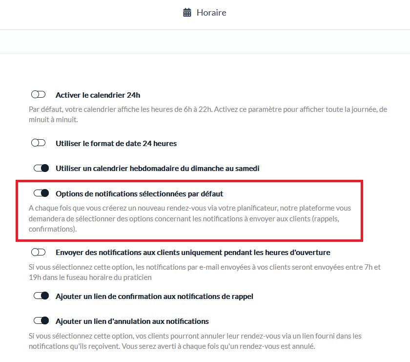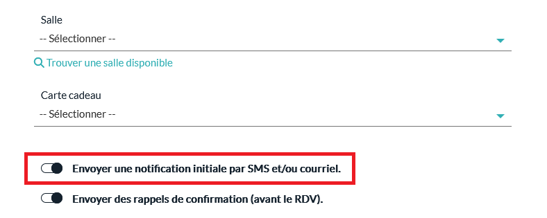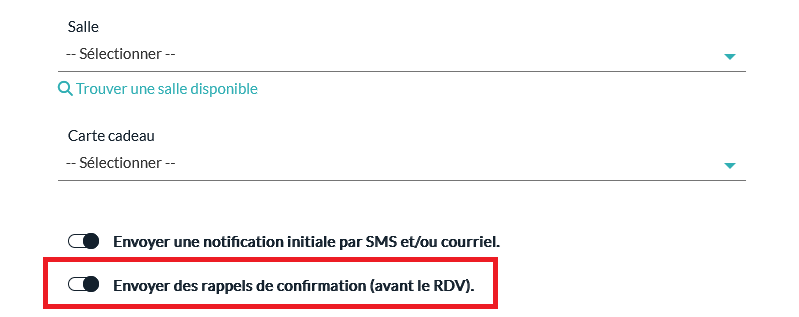 IMPORTANT : Vous pouvez personnaliser les rappels et définir leur timing dans les Paramètres de rendez-vous pour chaque type de rendez-vous. Les notifications peuvent être envoyées par e-mail et/ou SMS.