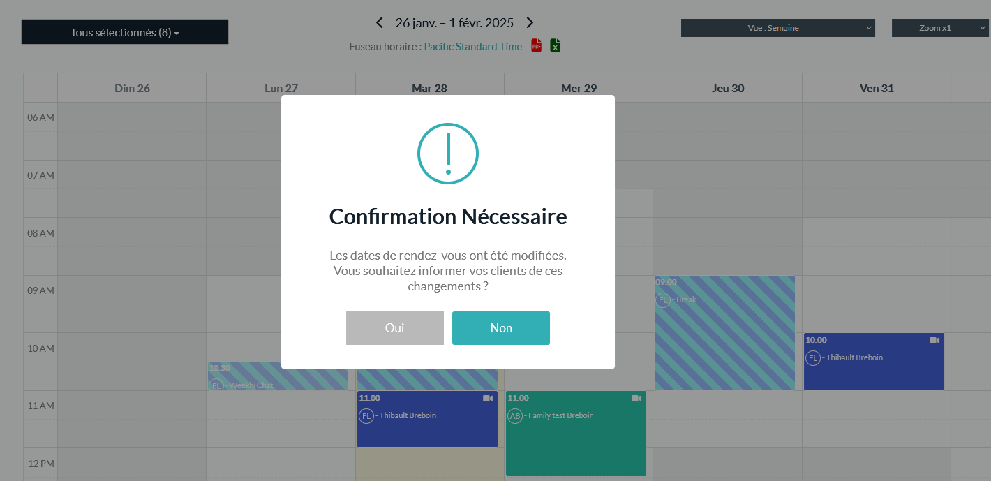 - Pour les modifications effectuées via le planificateur, le système vous demandera de confirmer si une notification doit être envoyée au sujet de cette mise à jour.