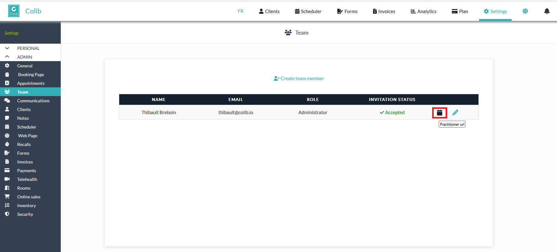 Suivez ces étapes pour partager le lien de réservation en ligne d’un praticien :