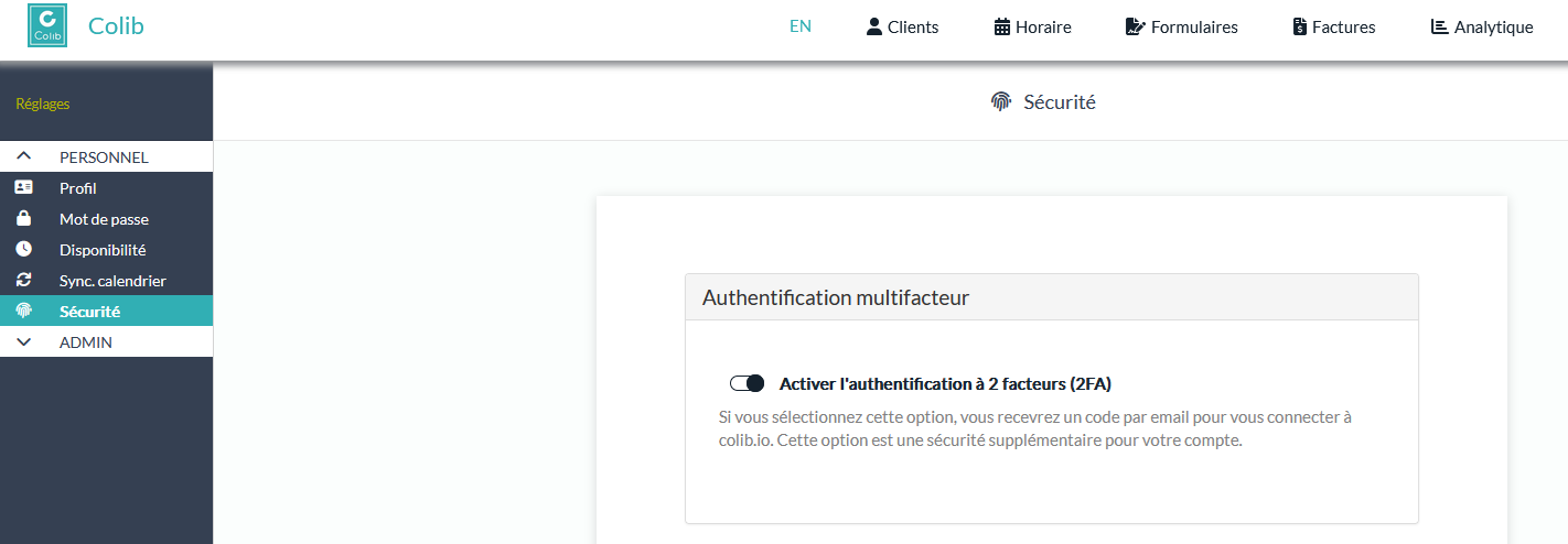 - Vos clients peuvent également activer cette fonctionnalité sur le portail client : https://portal.colib.io/MyProfile.