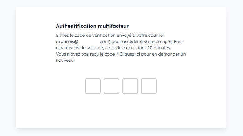 Une fois activée, un e-mail contenant un code vous sera envoyé à chaque connexion réussie après avoir saisi votre adresse e-mail et votre mot de passe.