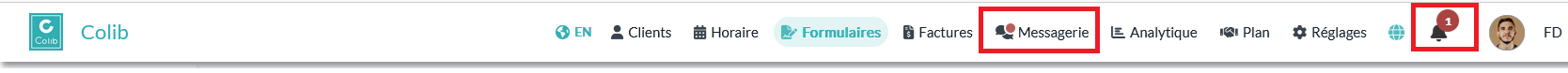 Vous recevrez une notification sur Colib et l'icône "Messagerie" aura un point rouge :